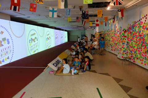 ゆるキャラの到着を待つ会場の子供達。